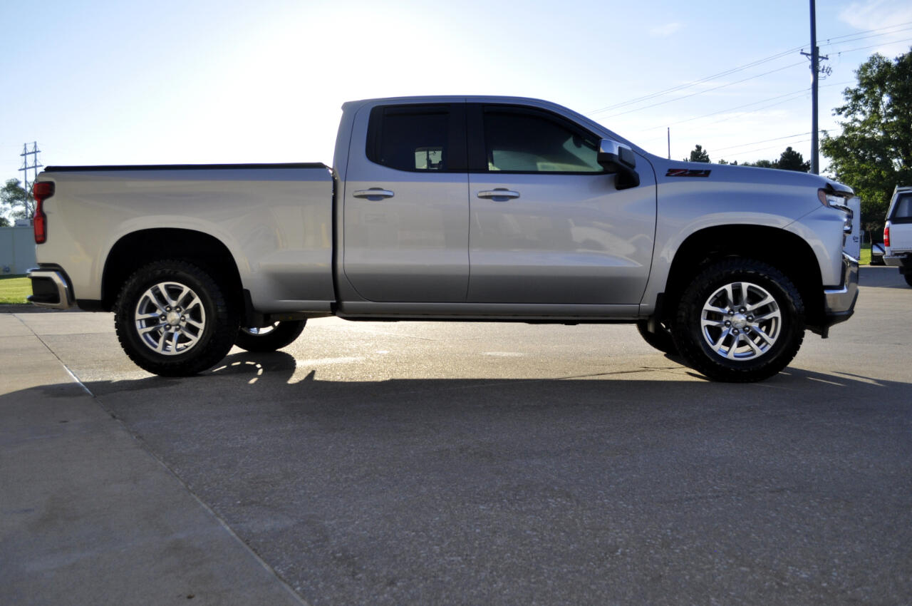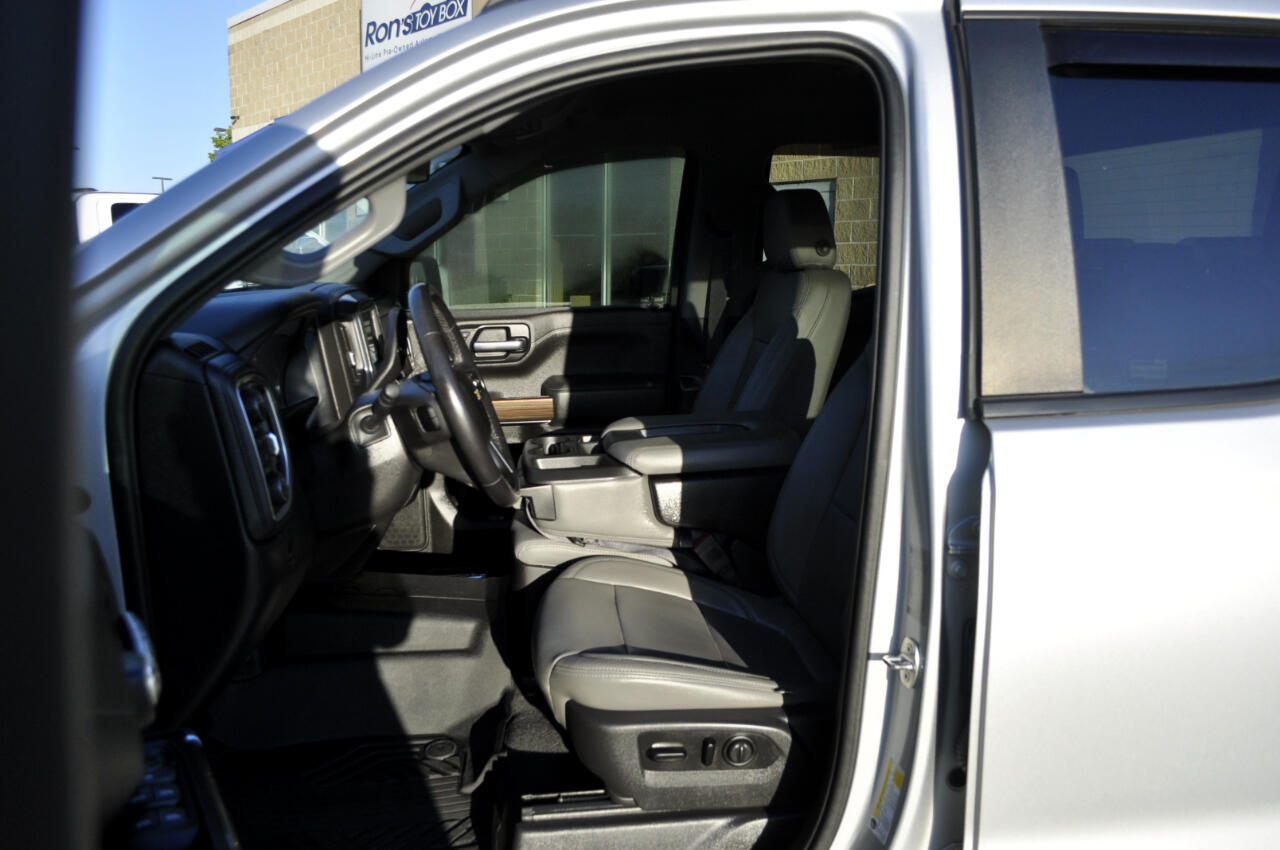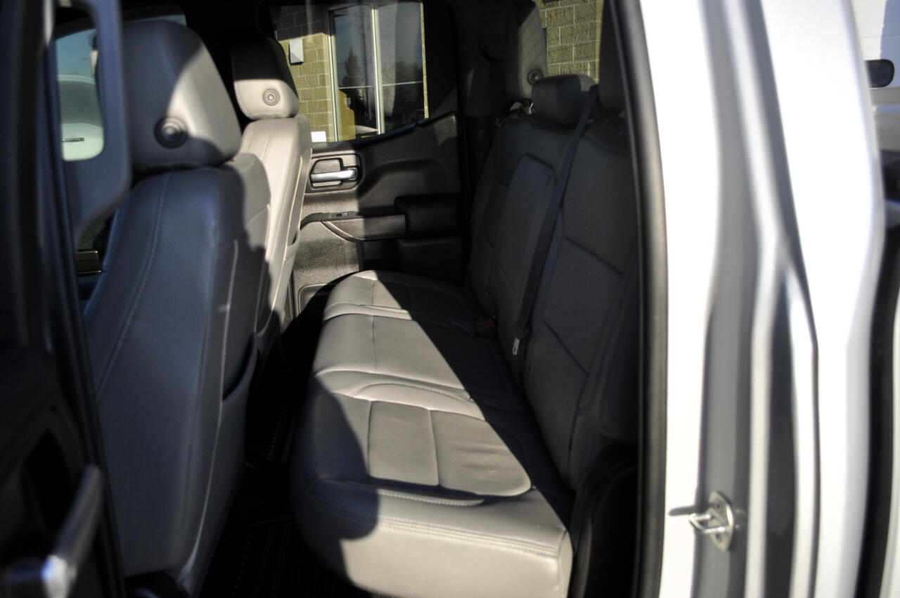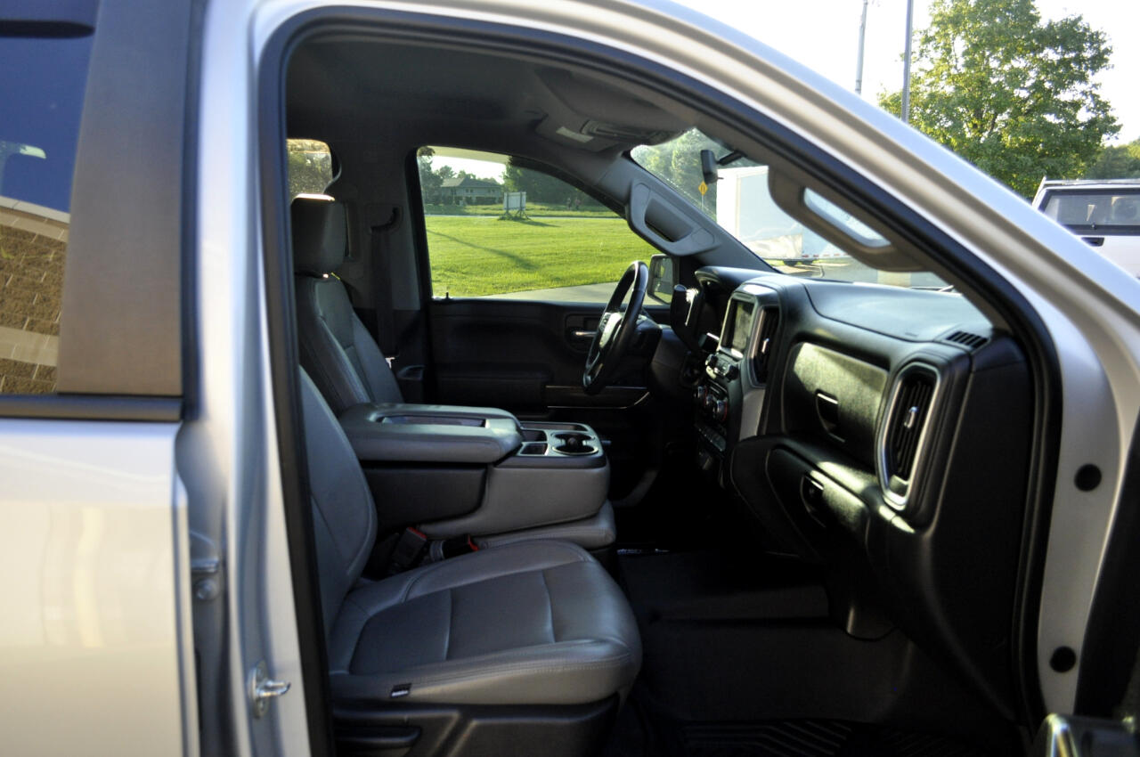 2019 Chevrolet Silverado 1500 LT, featuring a sleek silver exterior paired with a premium black leather interior for a bold yet refined look. This 4WD Double Cab is built to handle work, play, and everything in between with confidence and comfort.