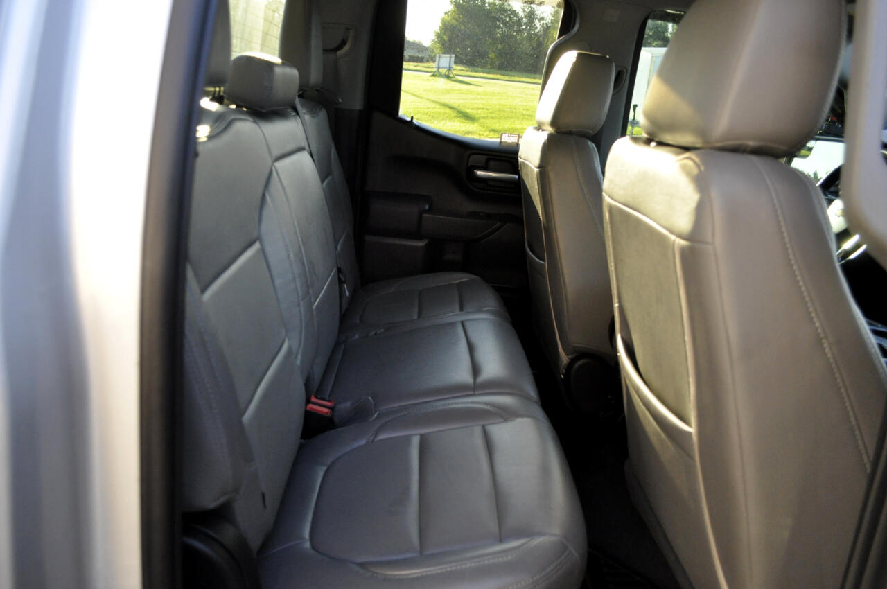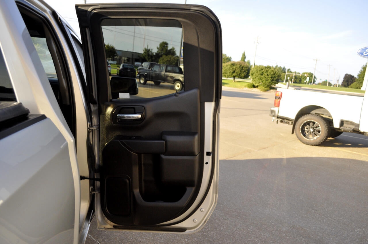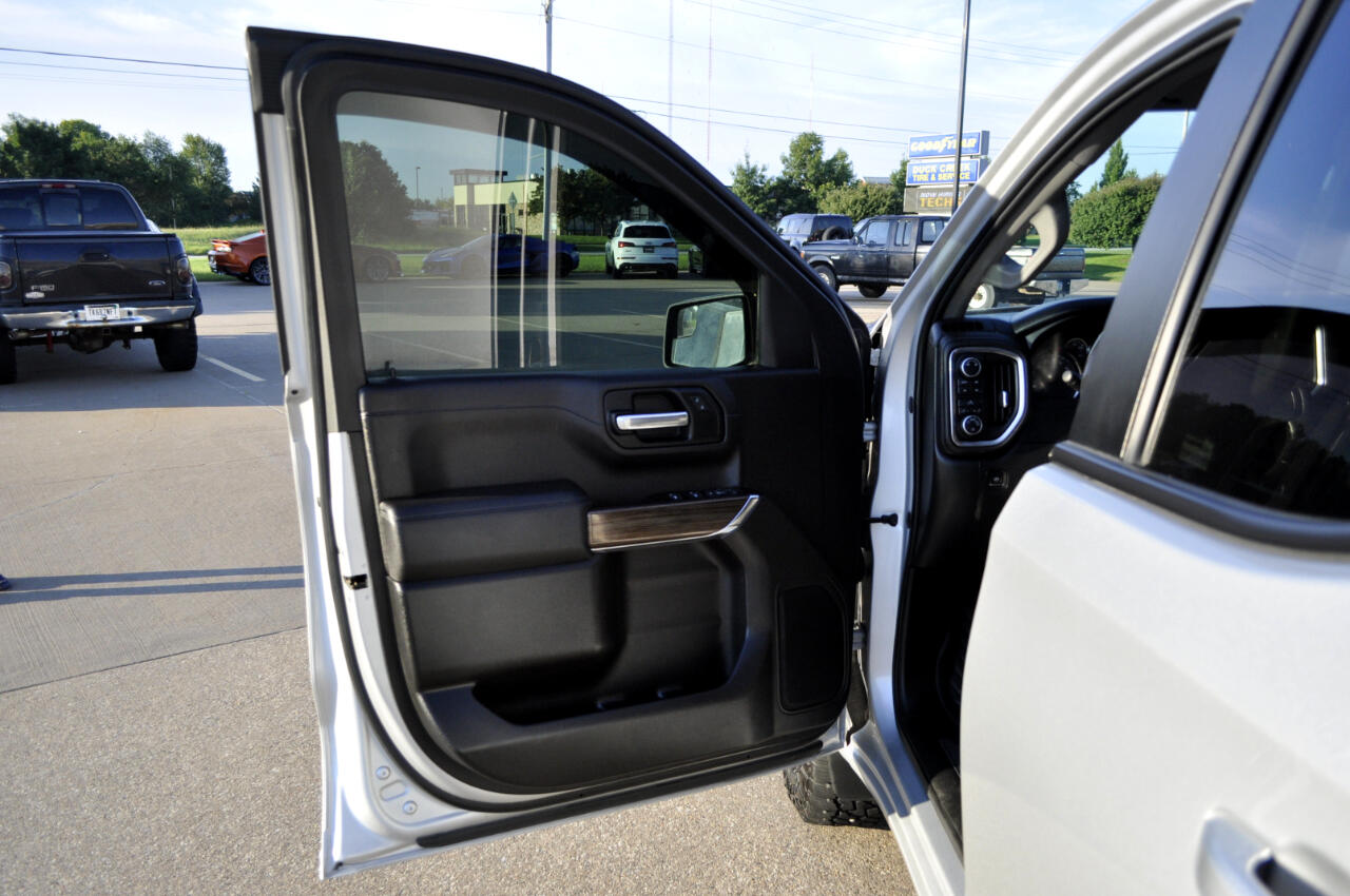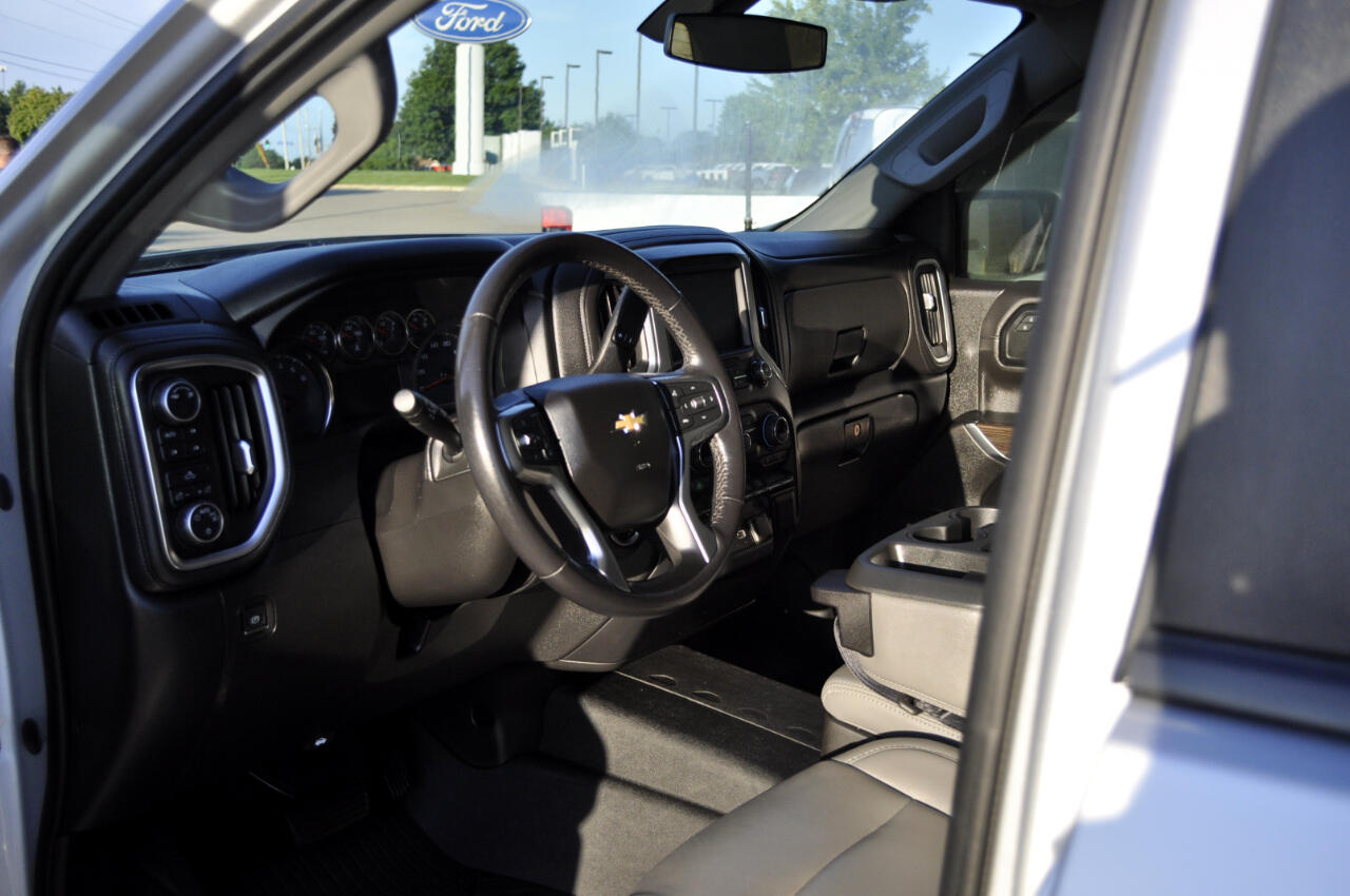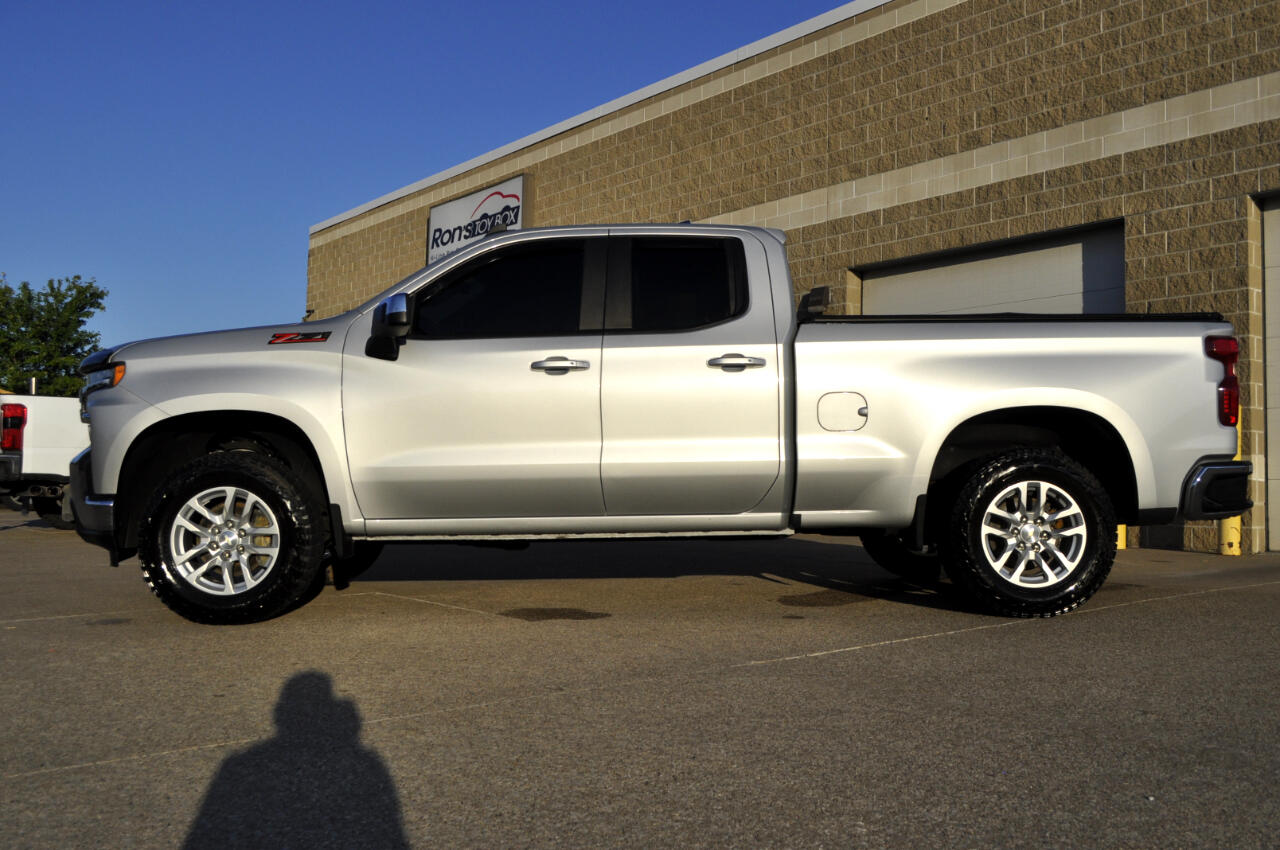 2019 Chevrolet Silverado 1500 LT, featuring a sleek silver exterior paired with a premium black leather interior for a bold yet refined look. This 4WD Double Cab is built to handle work, play, and everything in between with confidence and comfort.