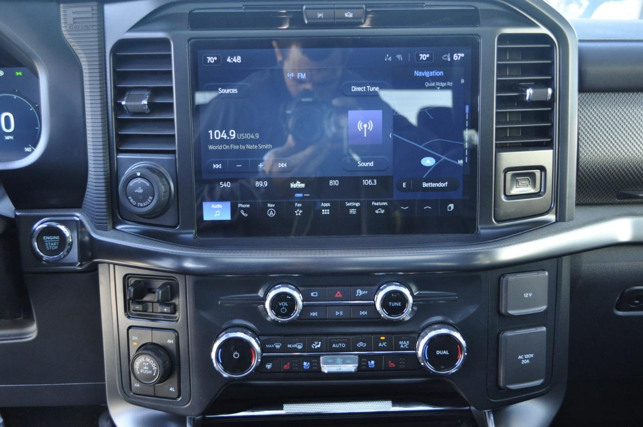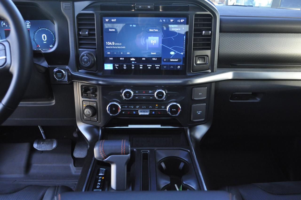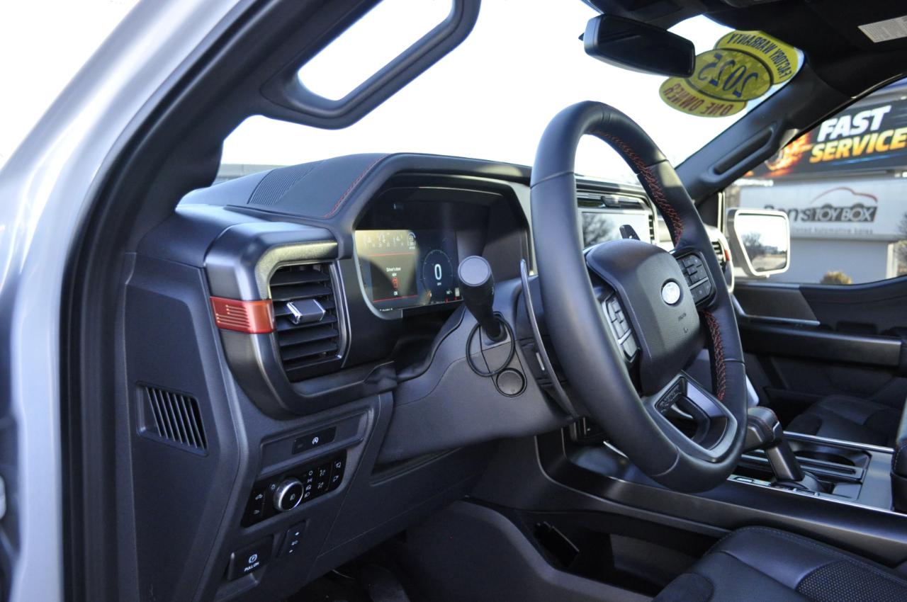 Inside, the cabin blends rugged performance with modern comfort. You’ll find a fully digital gauge cluster, large center touchscreen with SYNC® technology, premium audio, performance-inspired seating, and all the driver-assist features you’d expect in a flagship truck. Heated seating, advanced safety systems, and smart connectivity make this a truck you can drive every single day without sacrificing comfort.